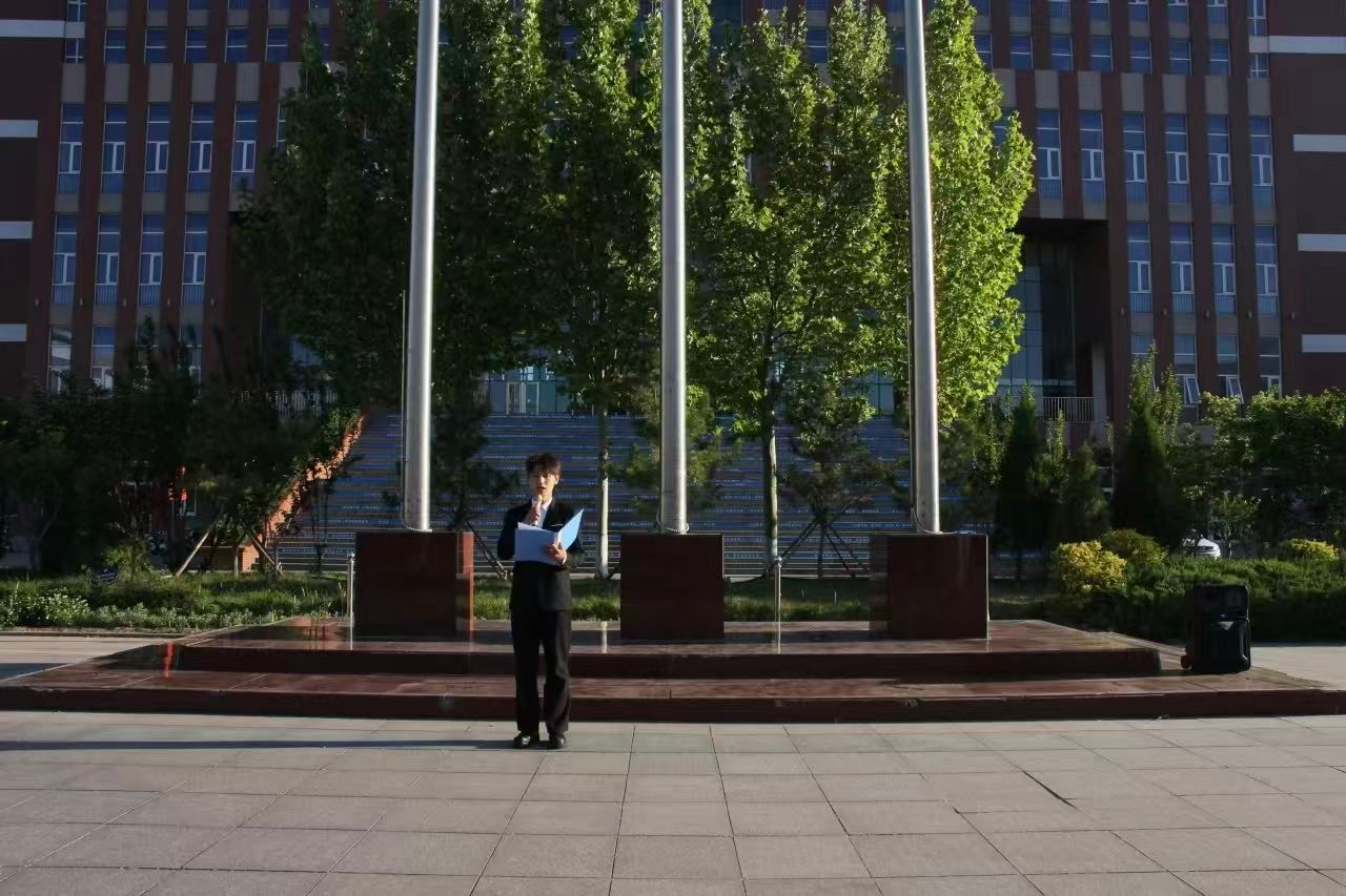 升旗仪式结束后,校团委书记庞进在国旗下的发言讲话,他以《祖国不会忘记你》开场歌词为始,赞扬了老一辈国旗队队员的责任与担当,同时对新一任国旗护卫队给予了深切希冀。
