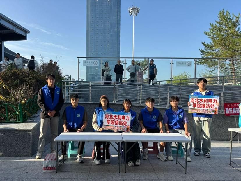 心向水利,步履铿锵;梦系电力,逐光而行。9月6日清晨,河北水利电力学院的迎新画卷正式展开。学校各系、职能部门提前部署、紧密联动,从沧州西高铁站、沧州西客站、沧州火车站到校园各处,构建起“全程护航”的迎新路线。 踏出车站出站口,新生们最先看到的,是身着蓝色志愿服的水院志愿者——他们举着“河北水利电力学院接站处”的醒目引导牌,笑容真挚地接过行李箱,轻声讲解乘车路线与报到流程。