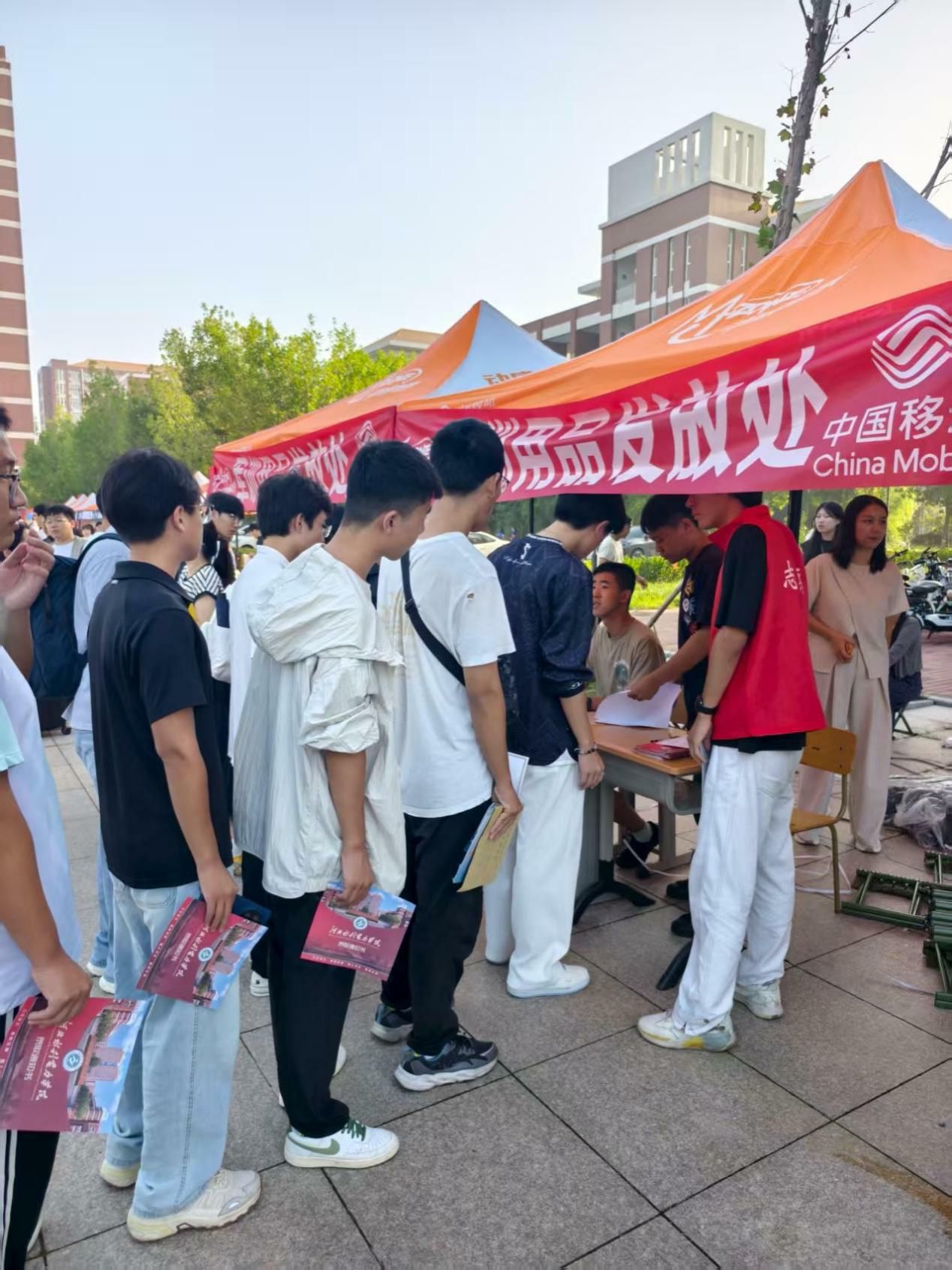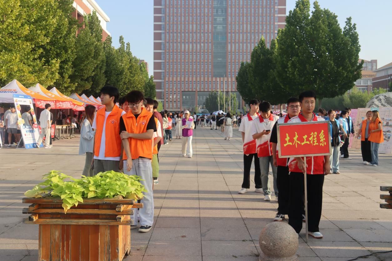 晨光熹微时,身着蓝色志愿服的“水电小蓝”已忙碌在校园各处:校门口引导车辆、打卡点讲解规则、宿舍区帮搬行李,连食堂角落都有志愿者为家长指引休息区。校园主干道旁,七个校级组织的招新棚如“水电特色展台”依次排开,成了新生解锁大学生活的“兴趣入口”。招新棚前的咨询声、笑声此起彼伏,每一份报名表的递交,都是新生对“水电新生活”的美好期许。