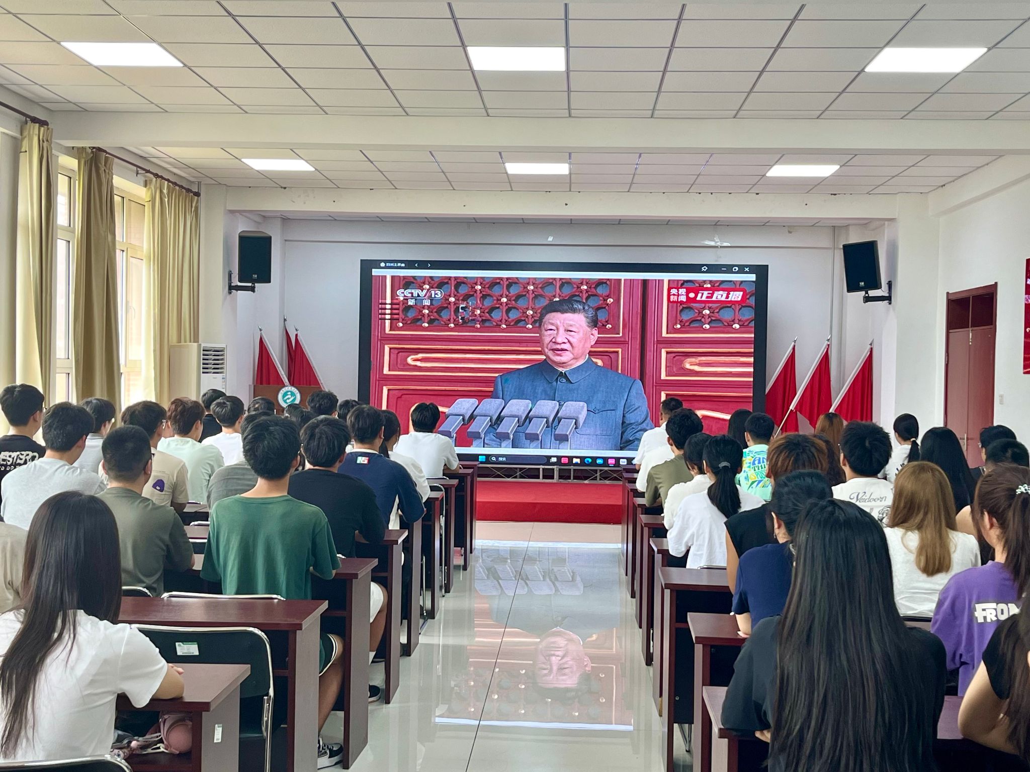 9月3日上午,校团委组织青年教师及各系学生代表在启智楼B201集中观看了纪念中国人民抗日战争暨世界反法西斯战争胜利80周年阅兵直播。