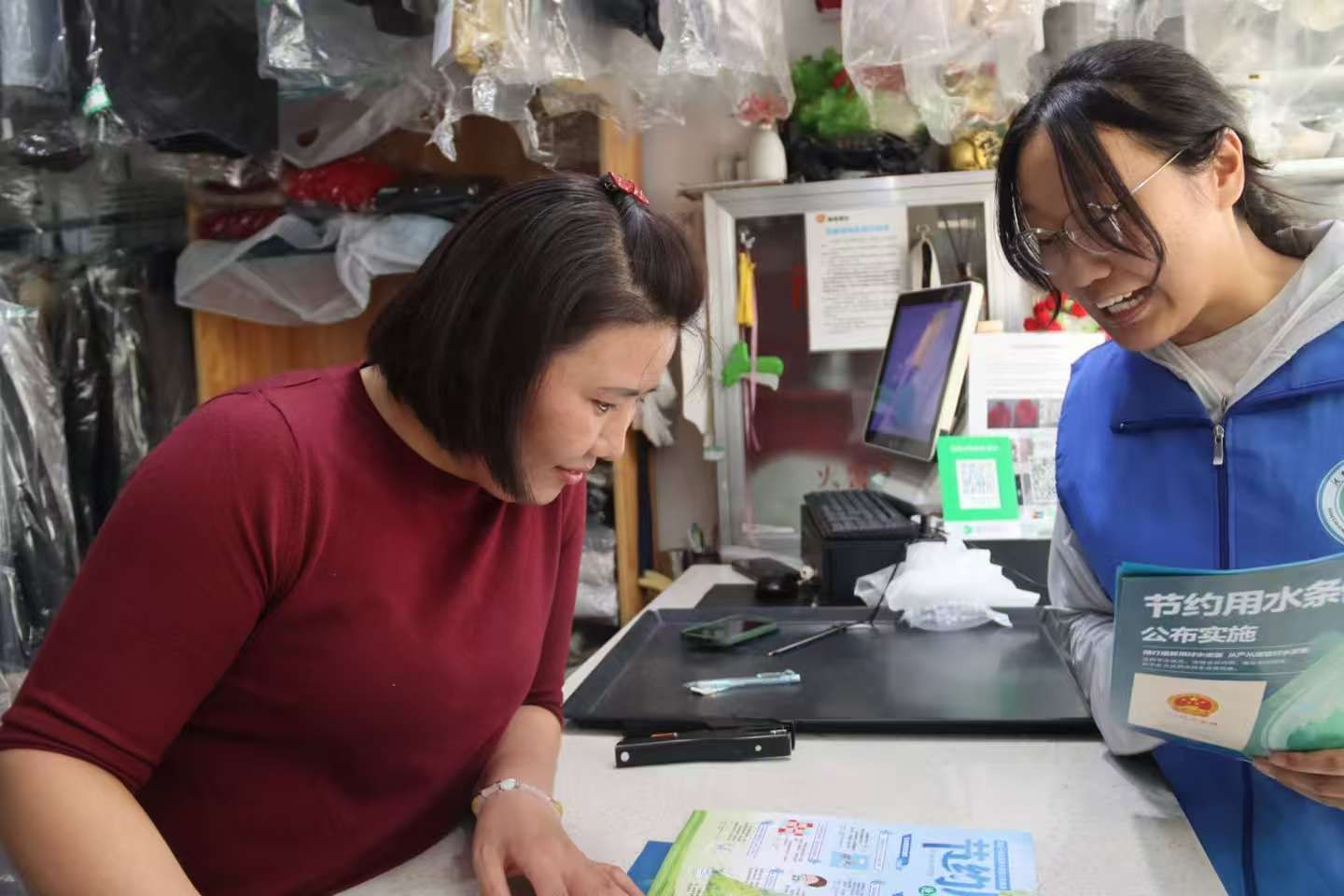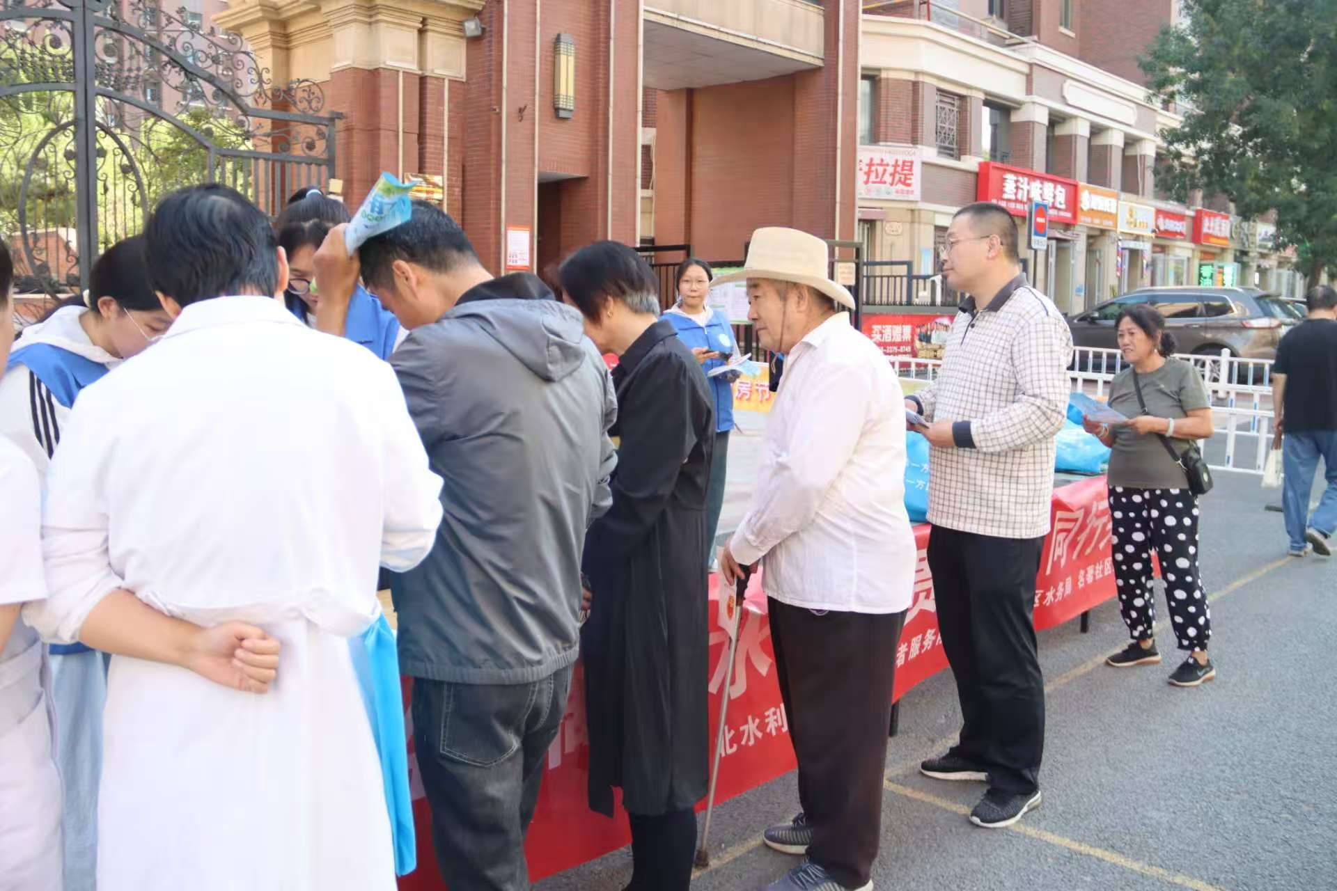 活动现场,校团委志愿者与运河区水务局工作人员首先在社区出入口设立宣传站点,一边向过往居民与商户发放《家庭节水小窍门》《商户用水节能指南》等宣传资料,一边结合手册内容用通俗语言讲解节水知识。