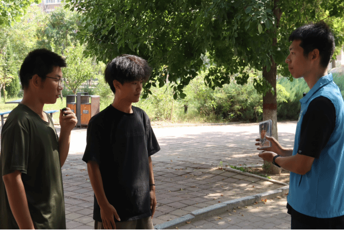 志愿者手持采访设备,在活动现场随机邀请同学参与互动。一是与同学们交流对烈士纪念日的认知;二是根据革命英烈的照片,讲述英雄事迹;三是与英烈隔空对话,诉说“想对先烈说的话”。他们对英烈说:祖国强大了,人民生活很幸福,请你们放心,强国一代有我们!接受采访的同学们说,“对于革命英烈,是感恩、是崇敬、是学习、更是传承。”