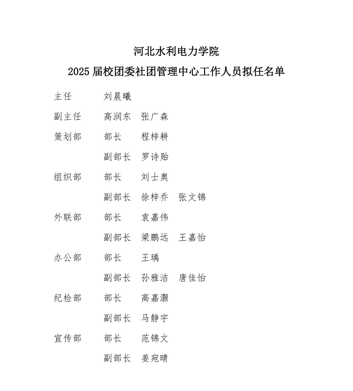 河北水利电力学院2025届校团委社团管理中心工作人员拟任名单