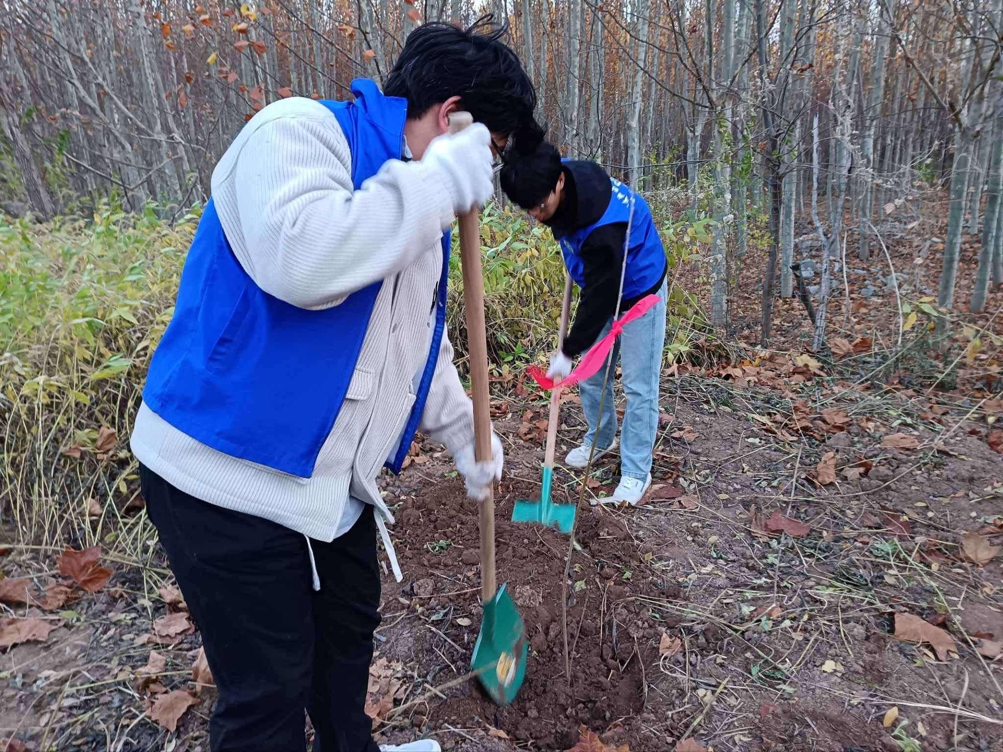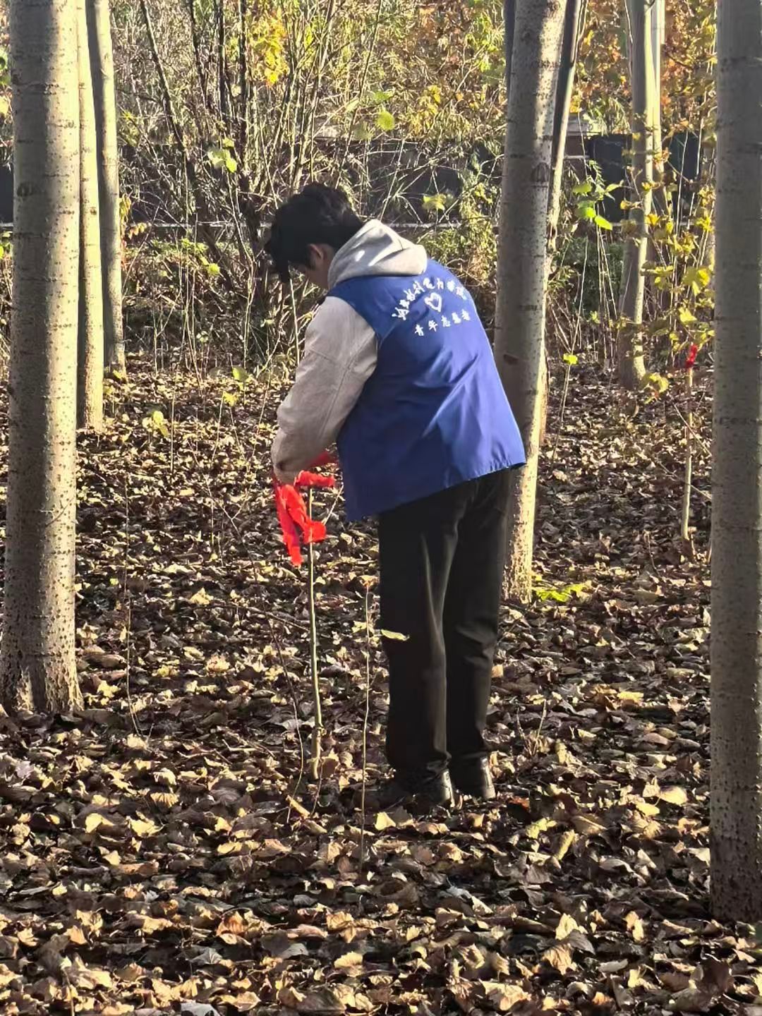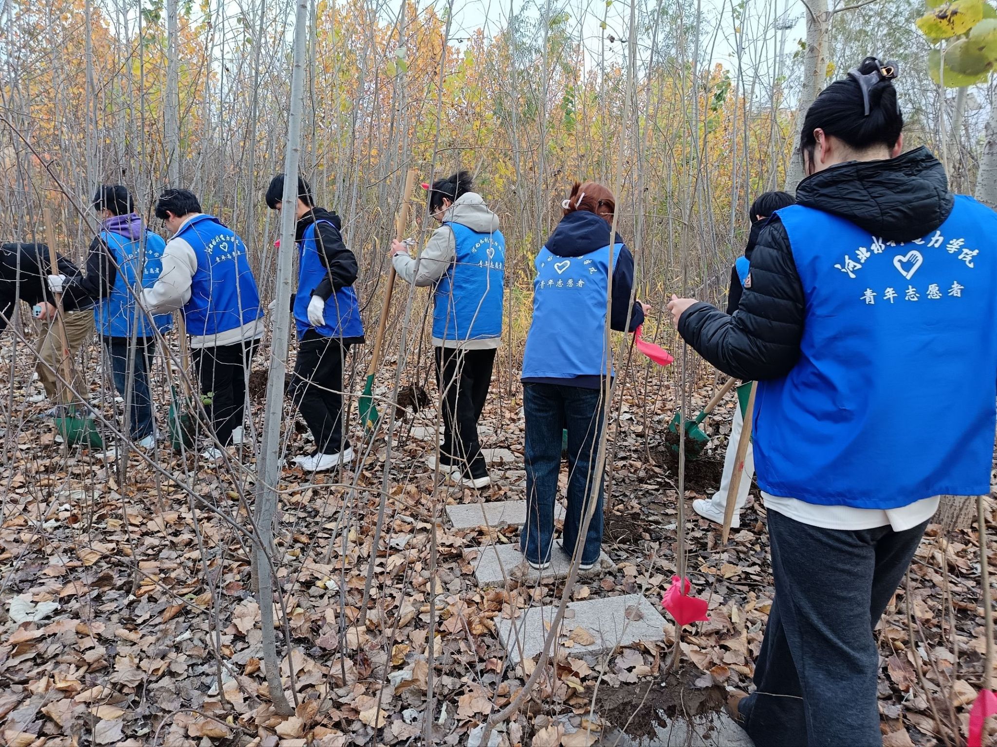 为持续推进“绿色学校”建设,培育学生劳动与生态意识,我校大学生志愿者联合会于2025年11月15日、16日继续开展“绿色守望计划暨校园野生树苗移栽认养”第三期、第四期活动。