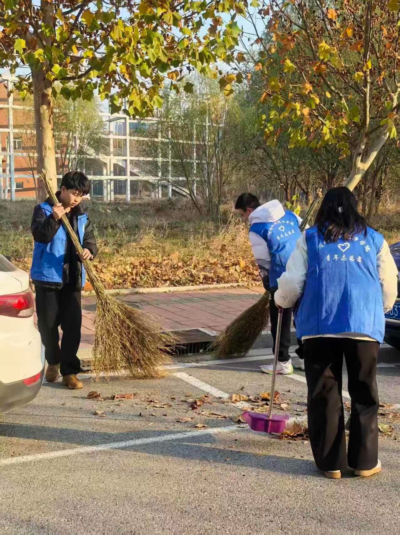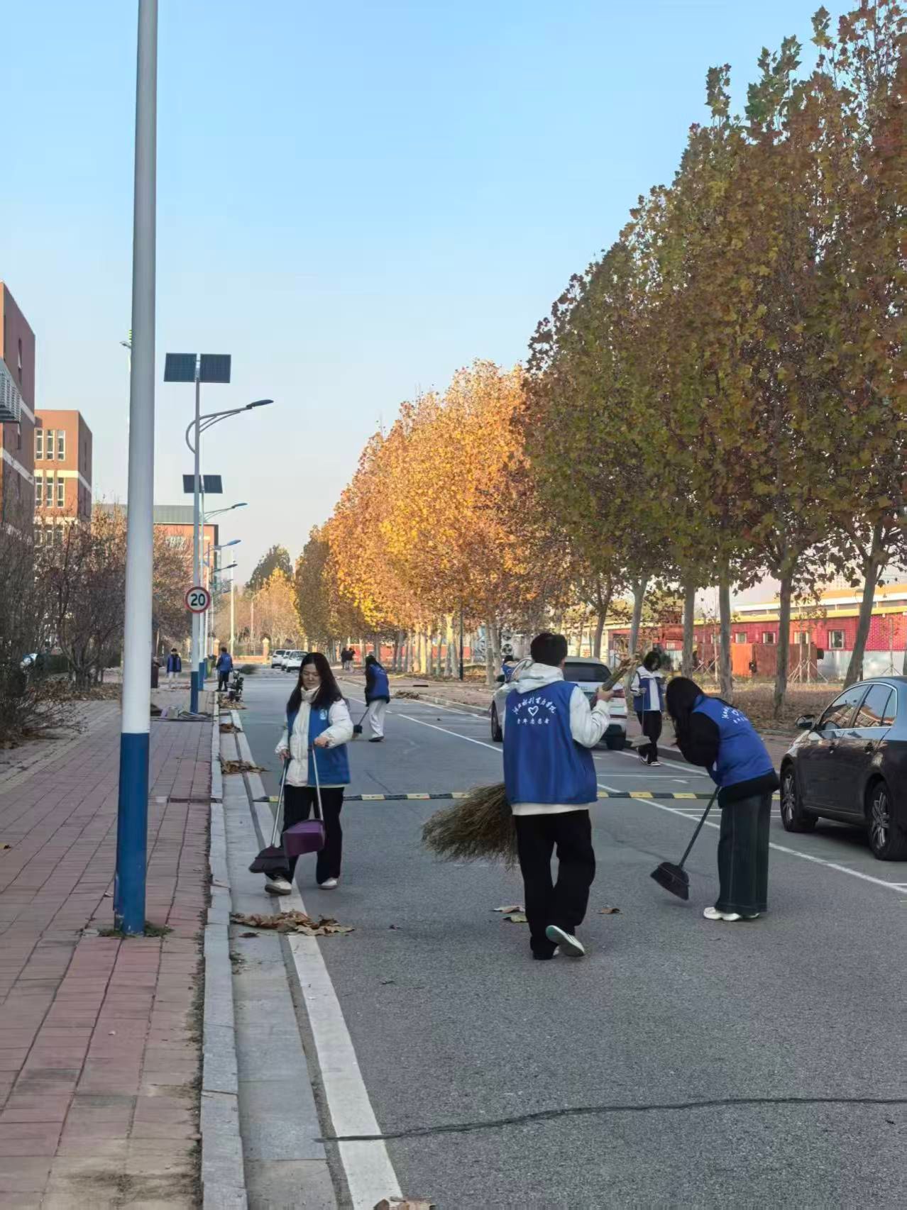 为维护校园环境整洁,营造舒适的学习生活氛围,2025年11月22日下午,校团委联合后勤处组织志愿者开展校园落叶清扫活动,重点清洁大活后门及周边街道区域。