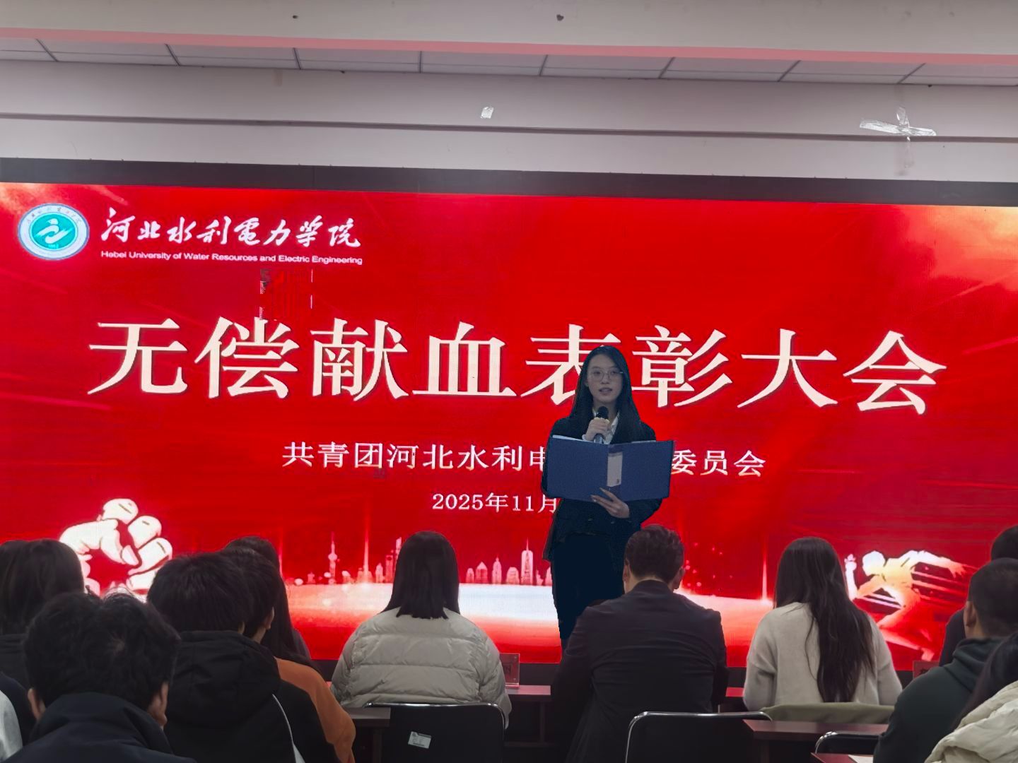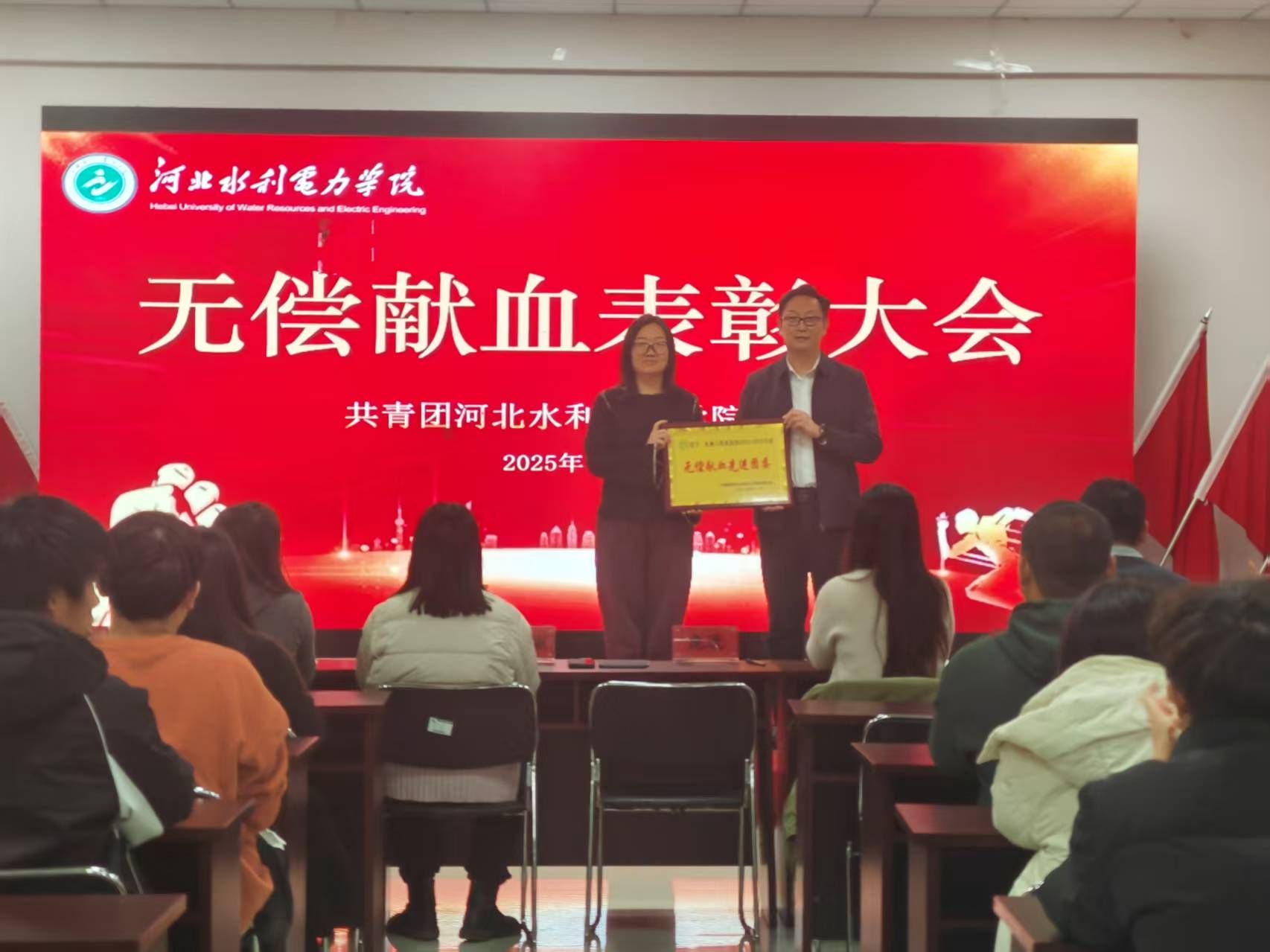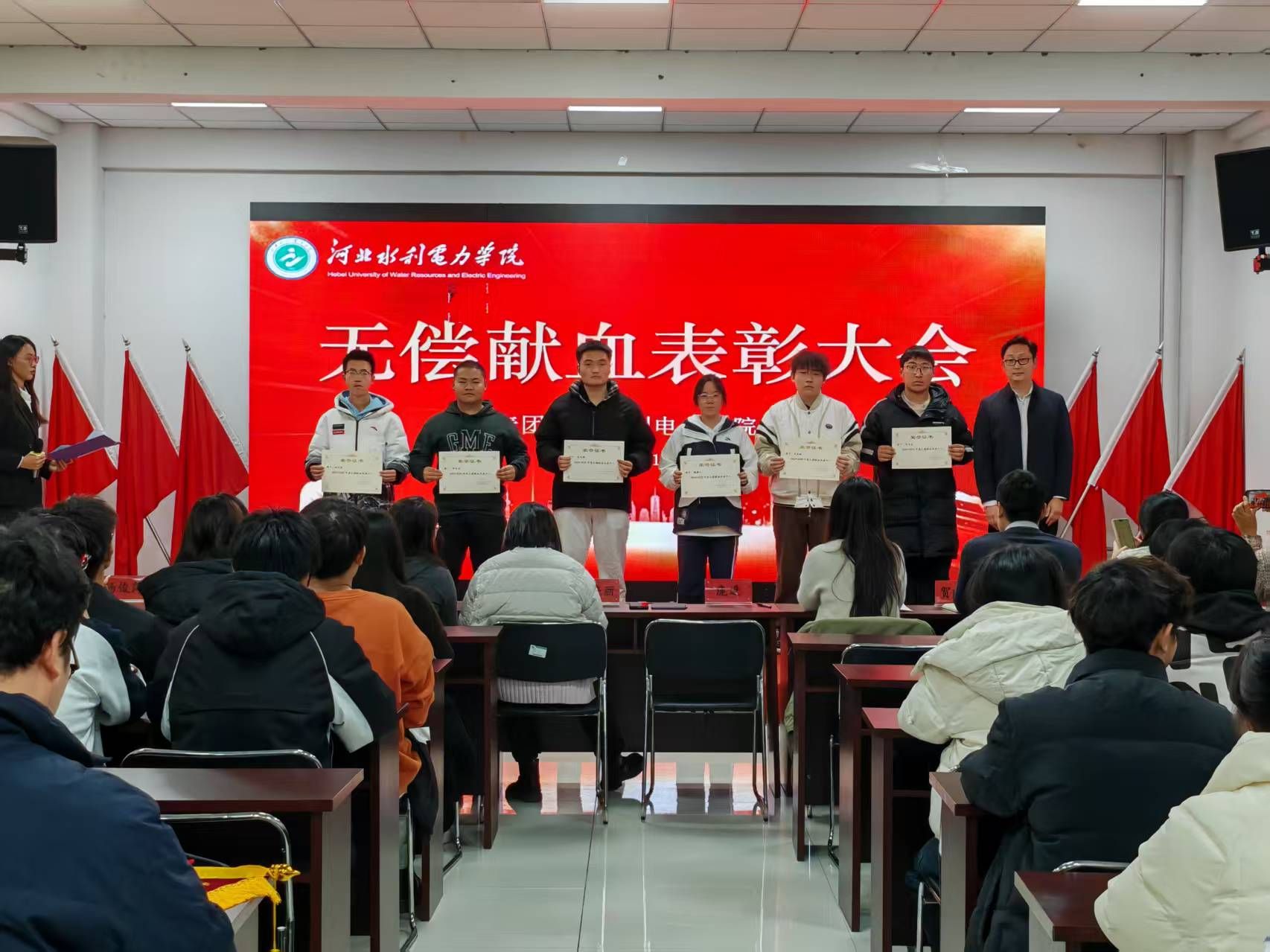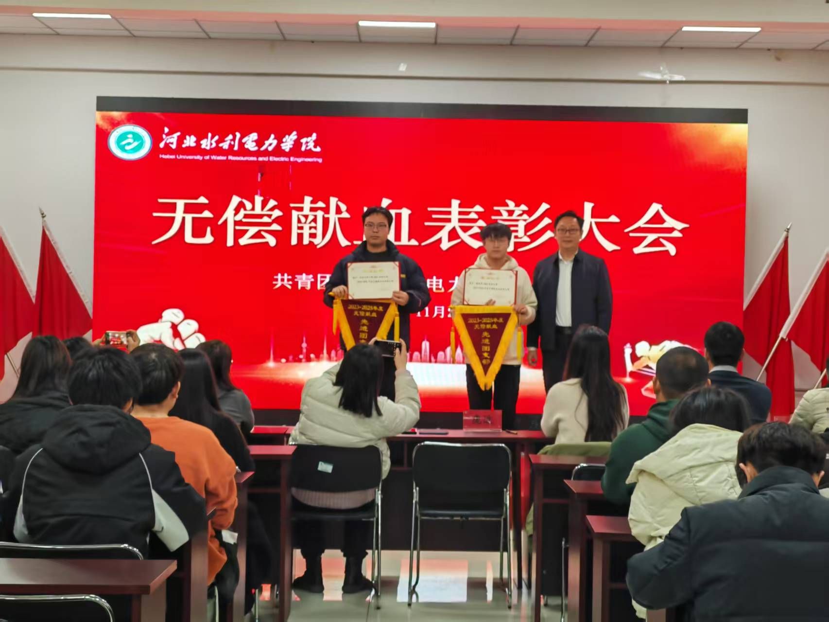 为弘扬无私奉献的人道主义精神,表彰在无偿献血活动中表现突出的集体与个人,2025年11月27日下午,校团委组织举行2023-2025年度无偿献血先进表彰大会。校系两级团委书记出席会议,献血先进个人、先进团支部书记参加会议。
