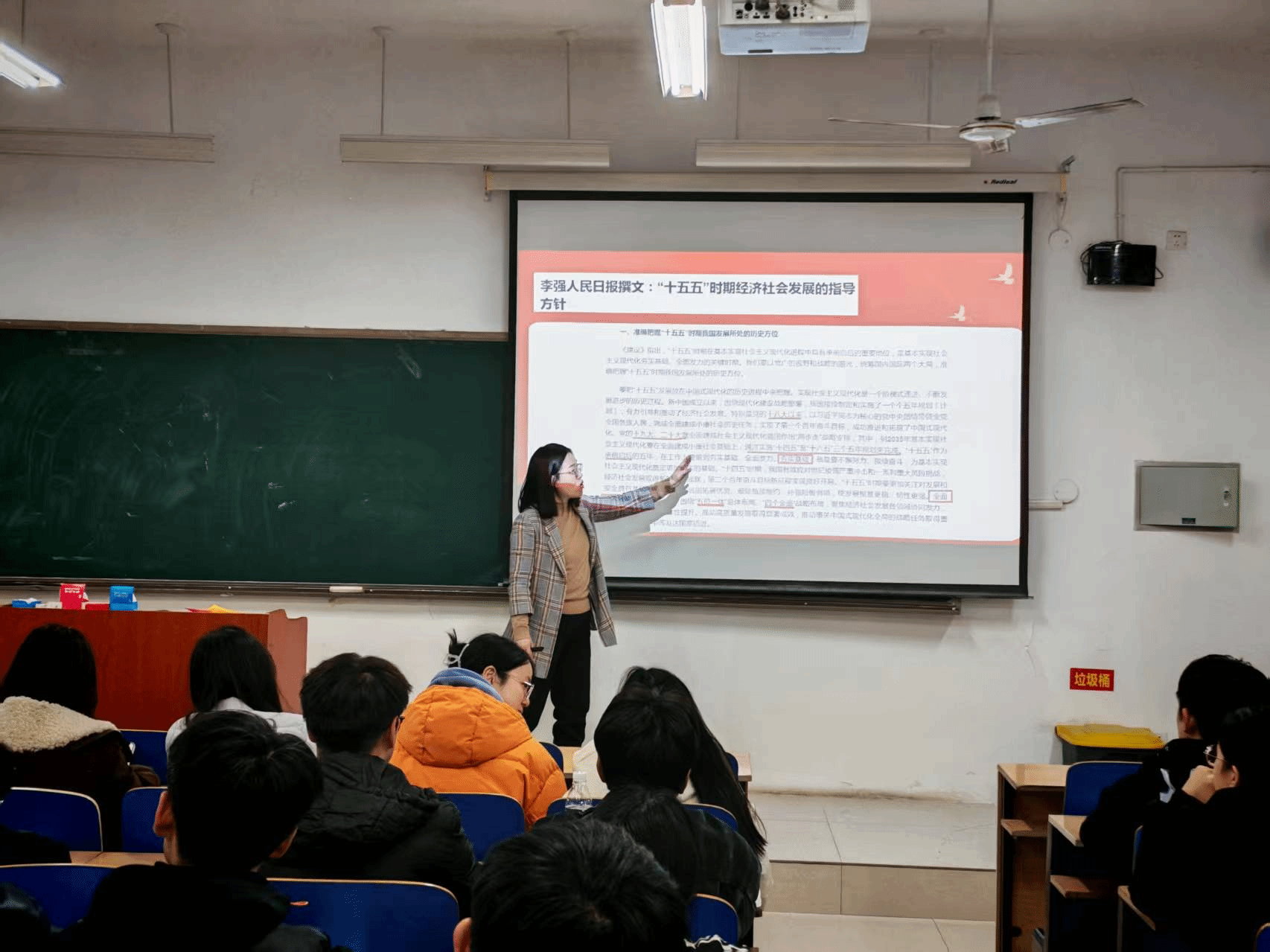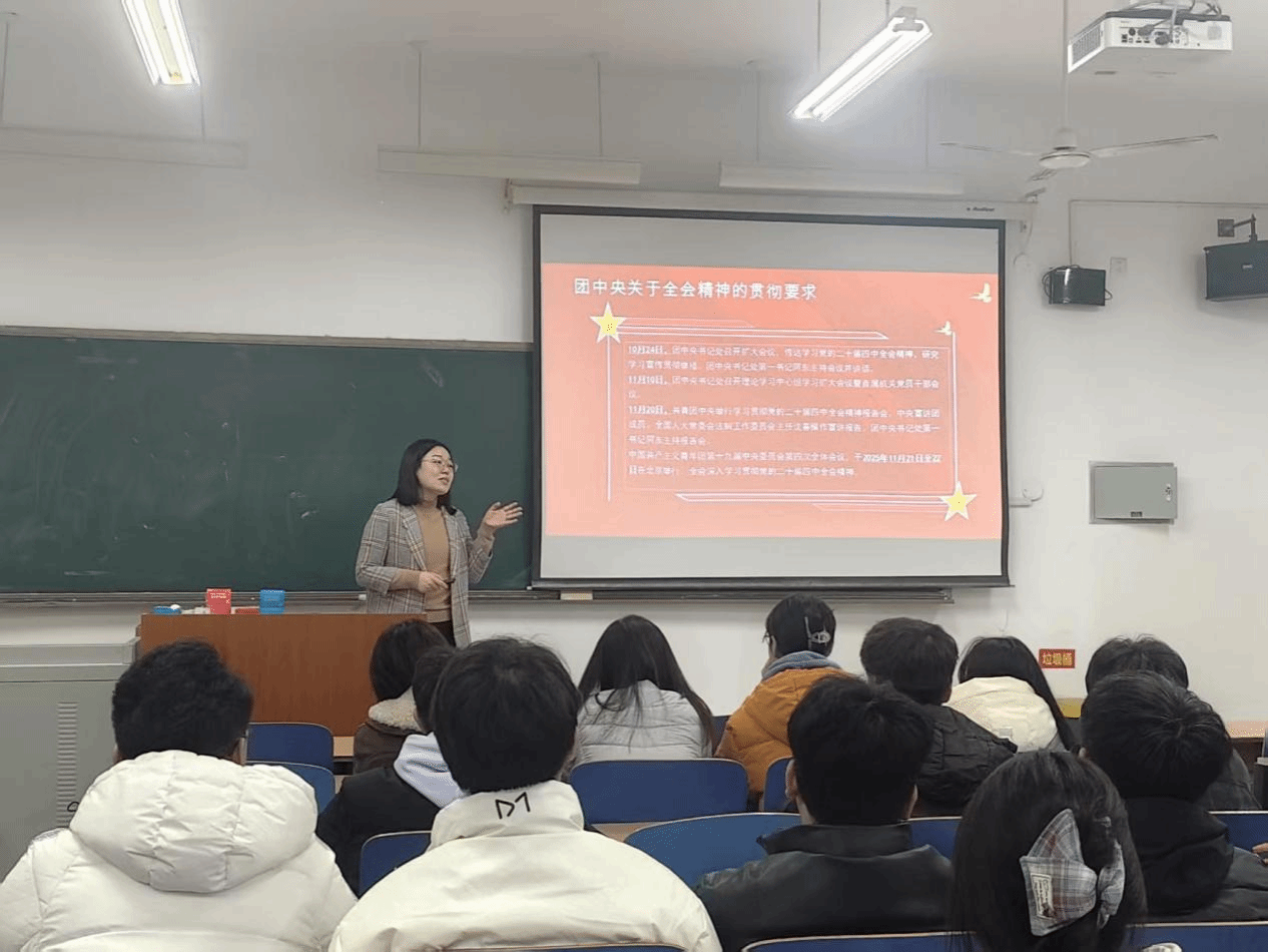 宣讲会上,韩艳丽老师以深厚的理论功底和饱满的青春热情,对党的二十届四中全会的重大意义、核心要义和实践要求进行了系统阐释和深入解读。她重点围绕全会关于“进一步全面深化改革、推进中国式现代化”的战略部署,结合国家发展蓝图与青年成长路径,阐述了“十五五”时期面临的机遇与挑战,并激励在场青年要勇立时代潮头,将个人理想融入国家发展的伟业之中。