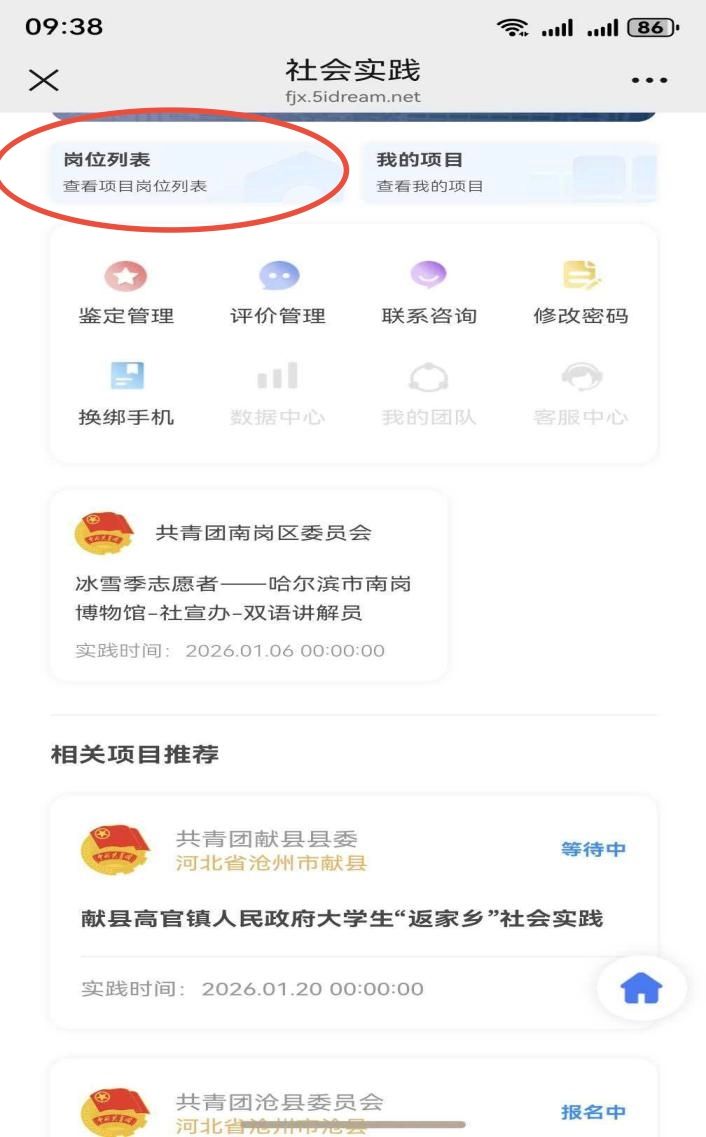 5.登录后点击“岗位列表”,进入岗位选择页面;