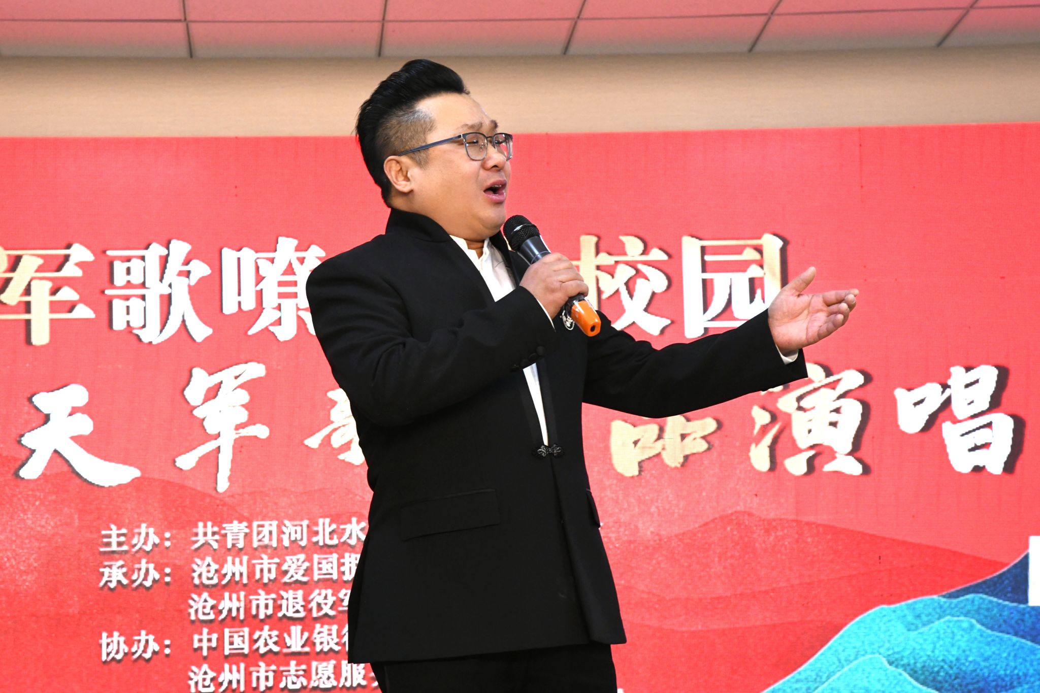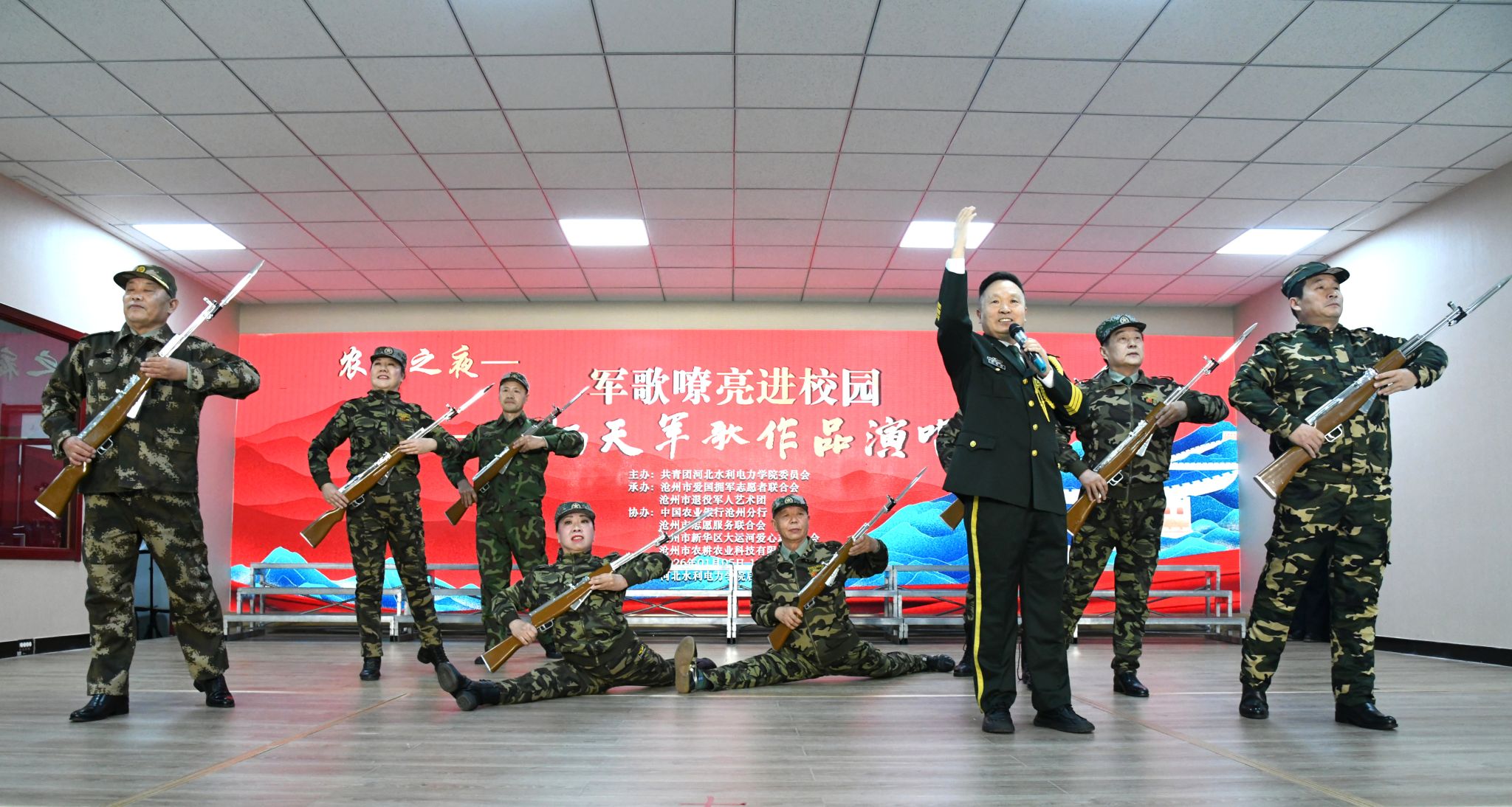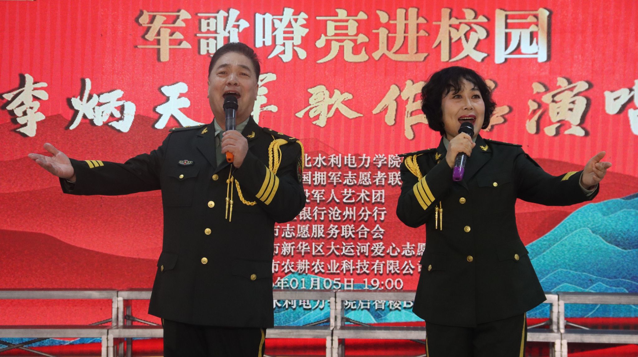 为深入贯彻落实新时代高校美育工作要求,厚植青年学子爱国拥军情怀,2026年1月5日晚,由共青团河北水利电力学院委员会主办,沧州市爱国拥军志愿者联合会、沧州市退役军人艺术团承办, 中国农业银行沧州分行、沧州市志愿服务联合会、沧州市新华区大运河爱心志愿协会、沧州市农耕农业科技有限公司联合协办的“军歌嘹亮进校园”暨李炳天军歌作品演唱会在我校启智楼B402成功举办。原海警学院政委、武警内蒙古边防总队总队长长、本次演唱会词作者李炳天将军,我校党委常委、副校长杨凯应邀出席本次活动。