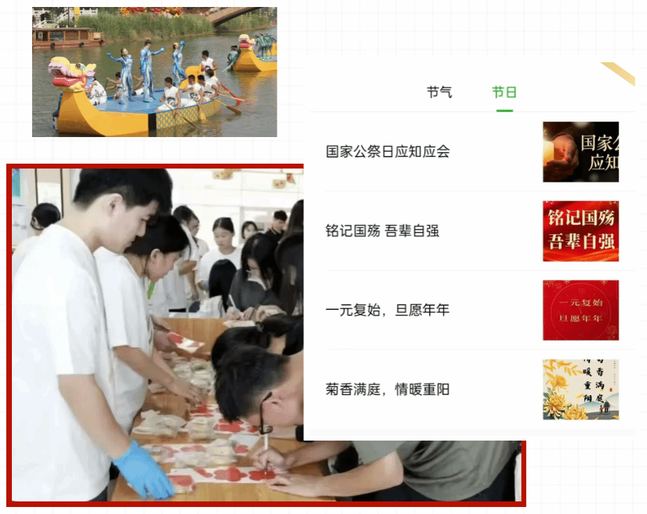 节日氛围:围绕春节、元宵、端午、中秋等传统佳节,推出系列主题推送,通过民俗科普、校园节日氛围纪实等形式,唤醒大家对传统节日的热爱。