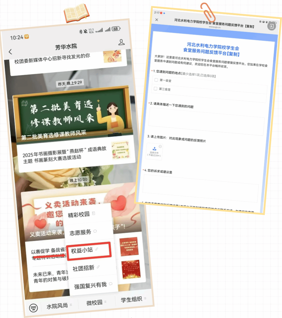 权益有声:联动校学生会开设“权益小站”专栏,实时收集并回应师生诉求;配合发布各类文体活动调查问卷,助力活动越办越好。