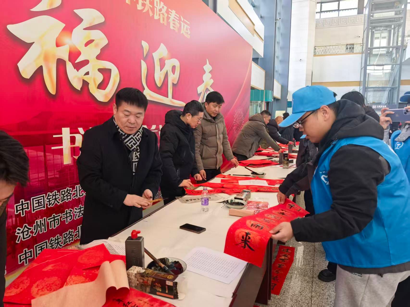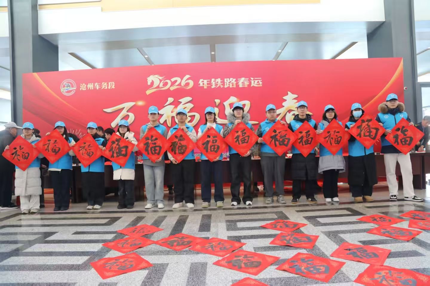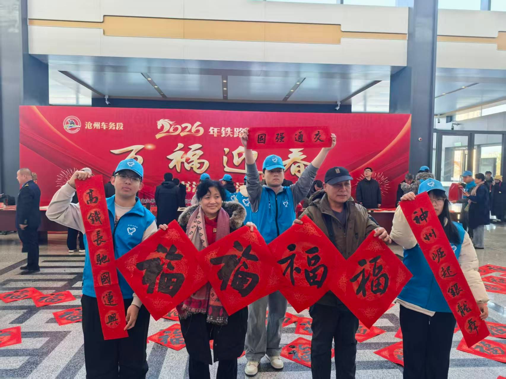 为深入推进青年志愿者服务春运“暖冬行动”,充分动员我校广大青年志愿者在春运期间为出行旅客提供更便捷、更温馨的志愿服务,着力打造青年志愿服务品牌,彰显青春担当,2026年2月2日上午,我校联合沧州车务段,于沧州站共同开展“迎新春・送春联”志愿服务活动。