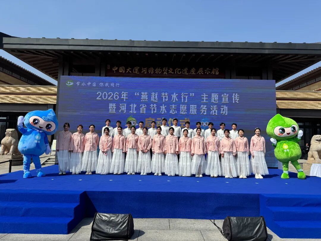 3月22日,在第三十四届“世界水日”之际,2026年“燕赵节水行”主题宣传暨河北省节水志愿服务活动启动仪式在沧州大运河非物质文化遗产展示馆广场隆重举行。我校作为协办单位受邀参与,大学生艺术团合唱团登台献唱《江河不息》,用嘹亮歌声为节水护水事业呐喊助威,以青春风采展现水利学子的责任与担当。