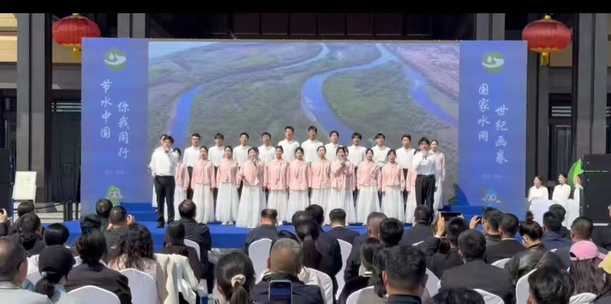 活动现场,在樊佳颖、李东烨、姜惠、陈冠伯四位同学的领唱下,合唱团的同学们以饱满的热情、铿锵的旋律唱响《江河不息》。歌声时而婉转悠扬,时而激昂澎湃,将对江河湖海的珍视、对节水护水的坚守融入每一个音符,为现场增添了浓厚的节水氛围,也让节水护水的理念随歌声深入人心,赢得了现场领导、嘉宾与各界代表的阵阵掌声。
