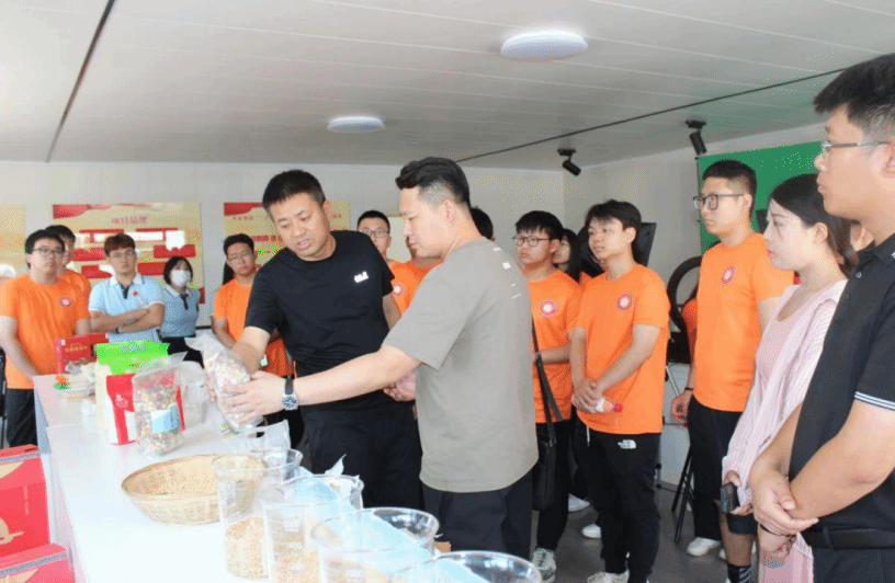 电气自动化系亮橙社会实践小分队来到了“齐家务镇乡村振兴党建联合体”的直播间,书记与学生开展了一场以“产教融合促发展,直播助农促振兴”为主题的直播。在齐家务镇乡村振兴党建联合体负责人于文举等人的带领下,师生一同参观了“书记带货直播间”,了解直播农产品的生产加工过程及产销运营模式。随后,我系亮橙社会实践小分队积极助力“书记直播间”,从旱碱麦面粉、黄骅脆枣、蝴蝶面等特色农产品的包装、口感、配料表等各个方面展开详细介绍,通过不断探索直播带货的“新”销售方式,用心讲好特色农产品故事。