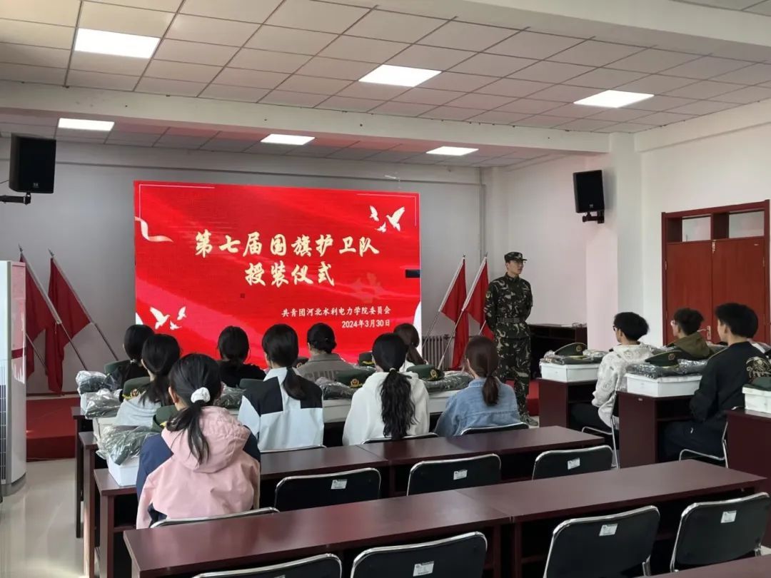 3月30日,河北水利电力学院第七届国旗护卫队在院团委隆重举行授装仪式,第六届国旗护卫队队员向全体接装队员表示热烈祝贺。从接到礼服的那一刻开始,队员们激动的同时又倍感责任重大,他们迎来了护卫国旗生涯中的一个重要节点。