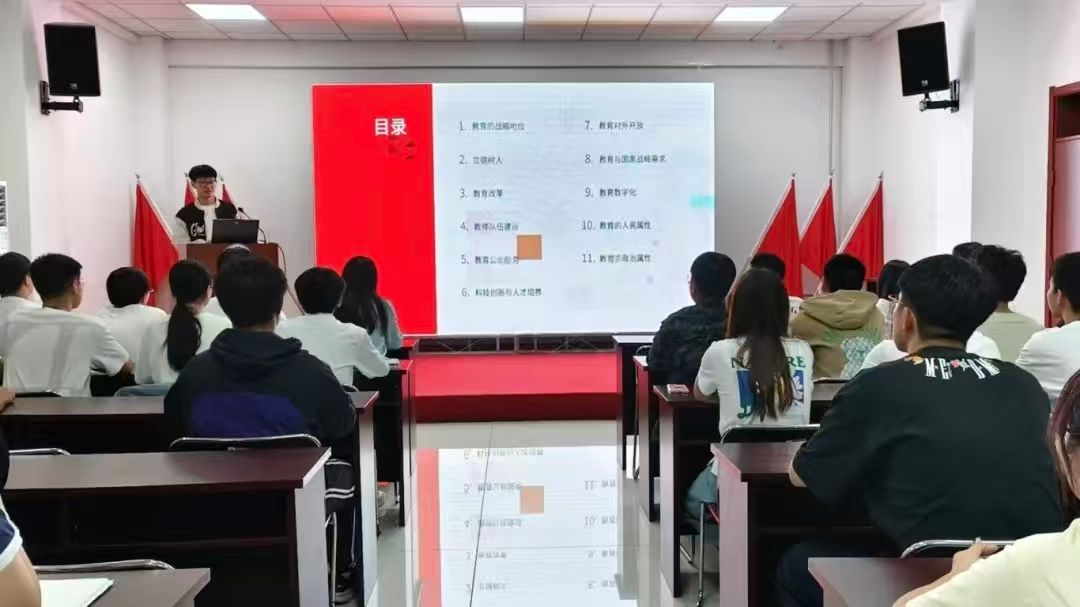 会议由校学生会执行主席霍奕帆主持并领学以下11个部分:“教育战略地位”、“立德树人”、“教育改革”、“教师队伍建设”、“教师公共服务”、“科技创新与人才培养”、“教育对外开放”、“教育与国家战略需求”、“教育数字化”、“教育的人民属性”、“教育的政治属性”。