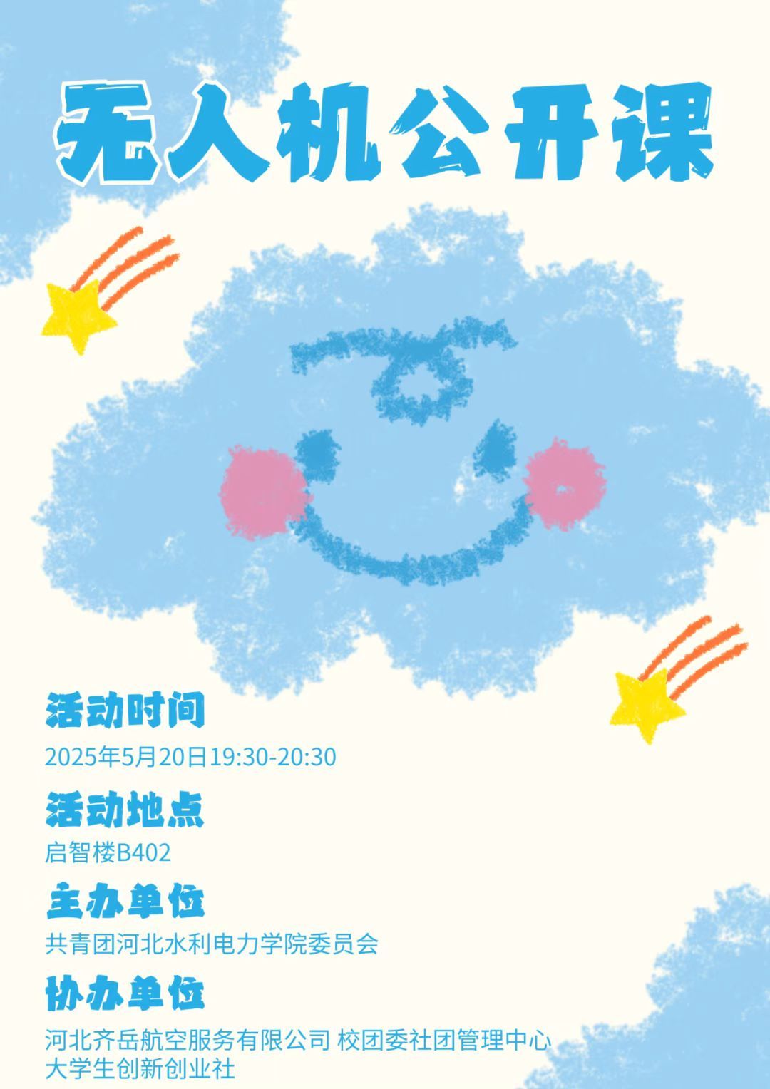 近年来,无人机技术发展迅猛,人工智能、导航定位、图像处理等前沿技术深度融入,使无人机在航空摄影、地理测绘、农业植保、物流配送、应急救援等领域广泛应用。为满足各行业对无人机技术人才的需求,普及无人机专业知识与操作技能变得尤为重要 ,共青团河北水利电力学院委员会、河北齐岳航空服务有限公司、校团委社团管理中心和大学生创新创业社共同举办此次活动。