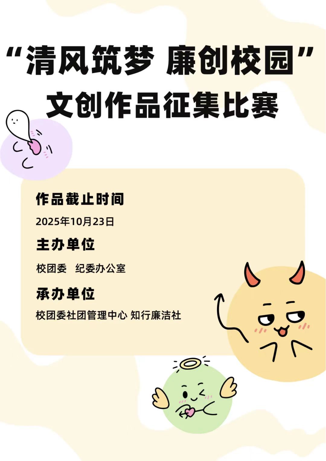 (1)实物类:将作品实物于2025年10月23日前交至校团委社团管理中心办公室,同时标明主题“廉创作品+作品名称+负责人+联系电话"。
