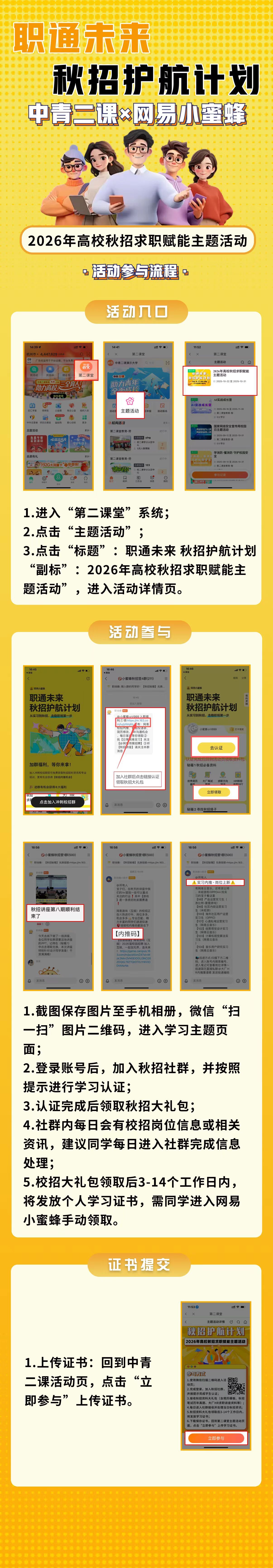 当前就业市场竞争日益激烈,高校学子在校招实习、毕业生秋招求职上面临岗位筛选难、备考无方向、求职技巧不足等问题。为响应国家就业促进政策,落实“三全育人”要求,帮助大学生提升求职竞争力、顺利对接优质就业资源,中青二课联动网易小蜜蜂共同发起“职通未来 秋招护航计划”,整合大厂资源与专业大厂HR求职指导,为高校学子搭建高效求职赋能平台。