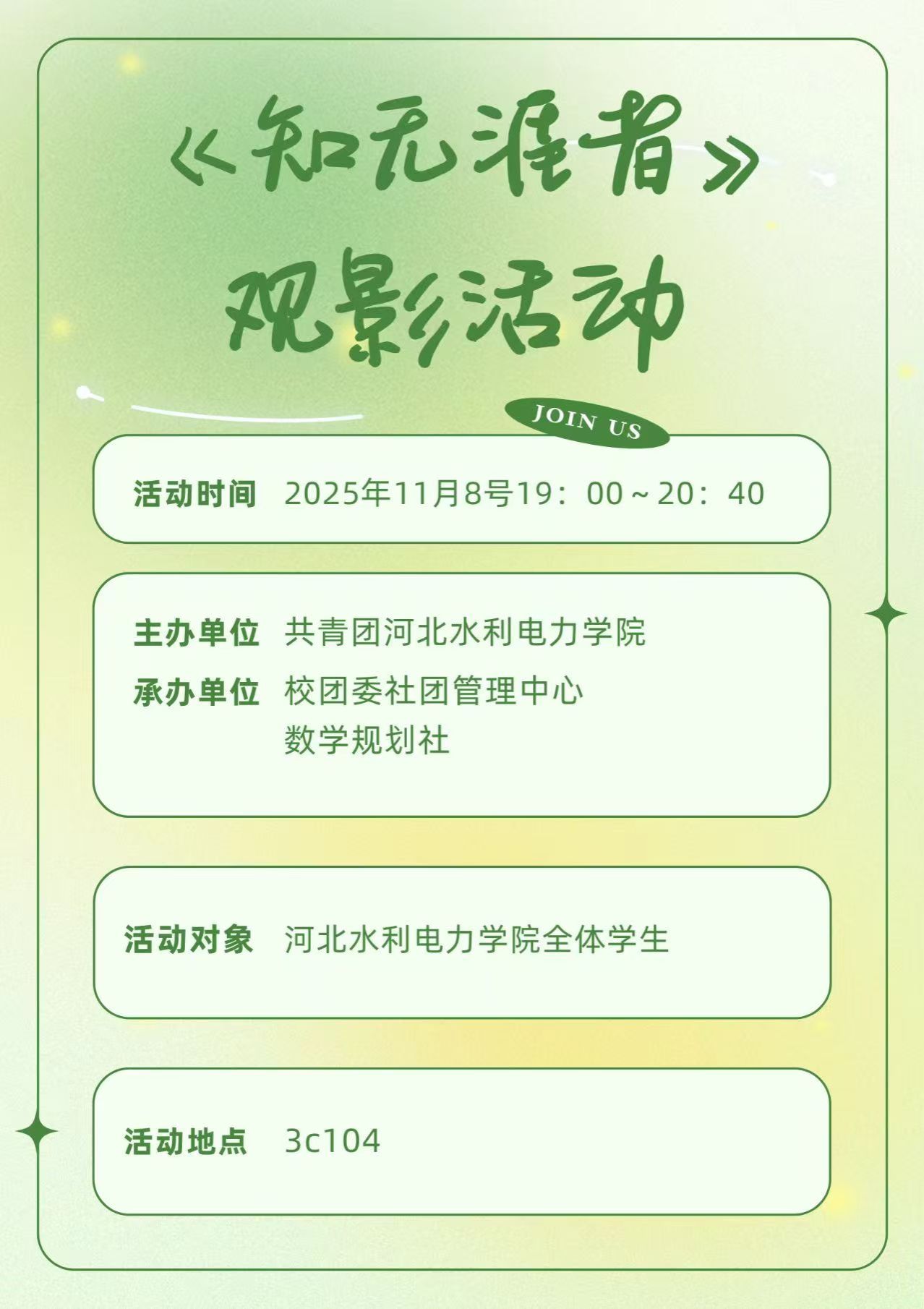 影片聚焦数学家拉马努金:他出身贫寒,凭天赋叩开剑桥大门,在战火与偏见中坚守数学理想,用开创性公式照亮学科边界。通过观影,重塑公众对数学的认知、展现数学魅力,扭转其“枯燥计算”的刻板印象;同时搭建跨领域交流平台,围绕“天才、坚持与热爱”等话题展开交流与讨论,激发探索未知的热情,传递“热爱可抵岁月漫长”的精神,赋能参与者……